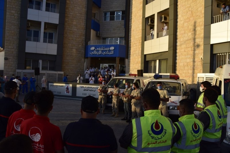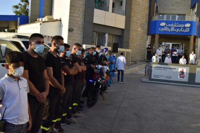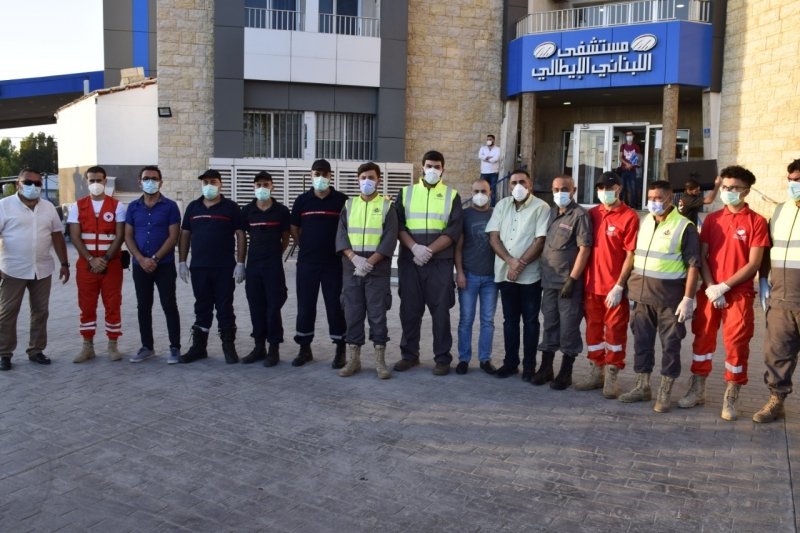 تداعت مختلف الجمعيات والهيئات والمراكز الصحية الى وقفة تضامنية مع مستشفى اللبناني الايطالي في صور تكريما ودعما للطواقم الطبية والتمريضية والإسعافية بعد قيامها بواجبها الإنساني والرعائي الصحي في مواجهة جائحة كورونا. حيث شارك في هذه الوقفة التضامنية التكريمية جمعية الصليب الأحمر اللبناني، الدفاع المدني في وزارة الداخلية، جمعية الرسالة للإسعاف الصحي، الهيئة الصحية الإسلامية، فوج الإطفاء - مركز البص، جمعية الشفاء، وبحضور رئيس طبابة قضاء صور في وزارة الصحة العامة الدكتور وسام غزال، مدير وحدة الحد من المخاطر والكوارث في الصليب الأحمر اللبناني DRR قاسم شعلان، وجمع من الأطباء والممرضين والمسعفين والطاقم الإداري والموظفين والعاملين الصحيين.. وكانت مناسبة عُزف فيها النشيد الوطني اللبناني تبادل بعدها المتضامنون التحية مع الأطباء والممرضين والمسعفين. كما كانت كلمة ترحيبية باسم المستشفى ألقاها رئيس قسم الجراحة العامة الدكتور ابراهيم فرج تقدّم فيها بالشكر والإمتنان لوزارة الصحة العامة وممثلها في قضاء صور الدكتور وسام غزال على تعاونهم ومؤازرتهم للمستشفى في مواجهة أزمة كورونا. كما أثنى الدكتور فرج على روح التضامن الوثيق والدعم المتبادل القائم ما بين المستشفى وكافة الجمعيات والمراكز الصحية في المنطقة والذي يصبّ في خدمة الحفاظ على الصحة والسلامة العامة للمواطنين. كما تخلل اللقاء تصفيقاً من قبل المتضامنين والمحبين على أنغام نشيد "سوف نبقى هنا...".