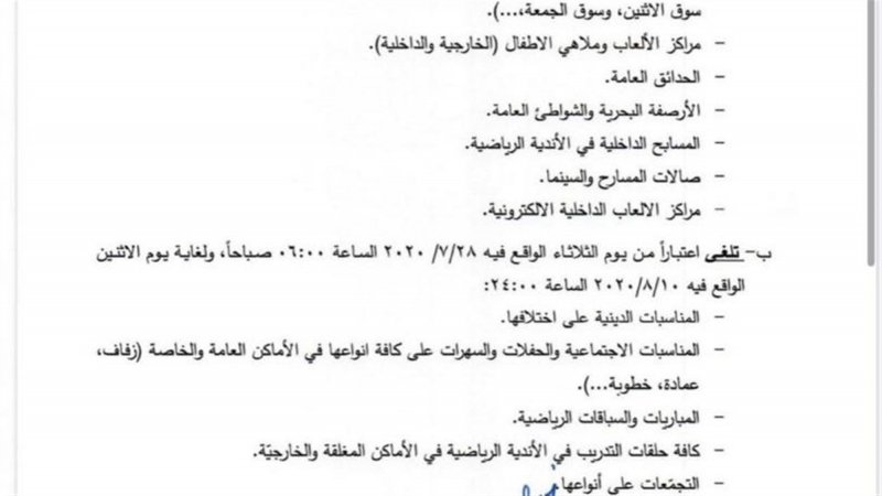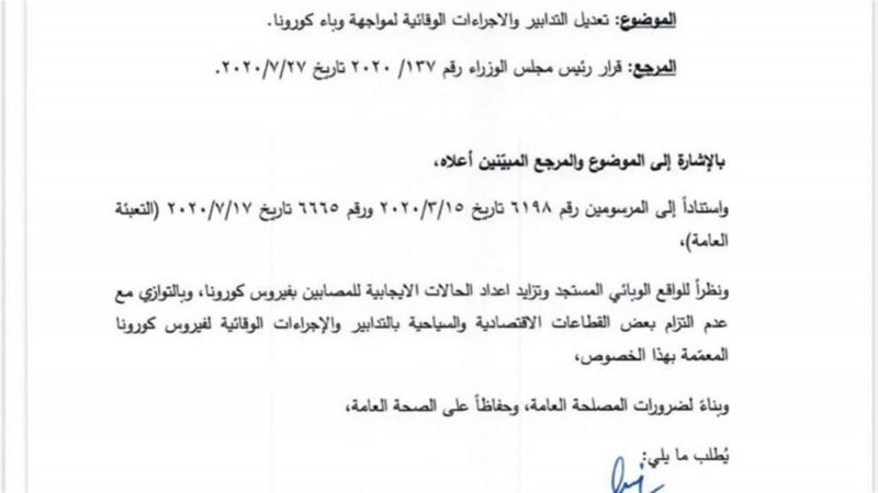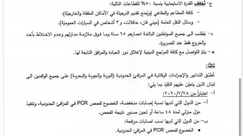 أصدر وزير الداخلية والبلديات "محمد فهمي" مذكرة تضمّنت تفاصيل الإجراءات التي سيتم العمل بها اعتبارا من الخميس 30 تموز لمنع انتشار فيروس كورونا.