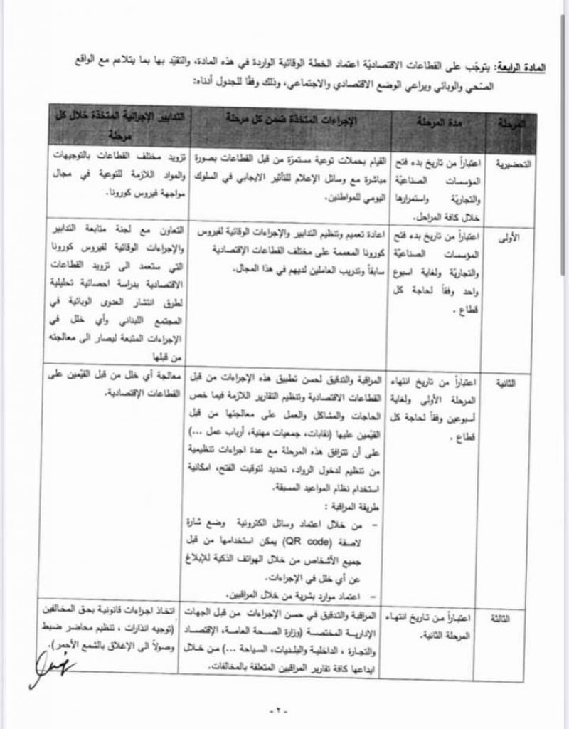 تعديل مواعيد فتح واقفال المؤسسات الصناعية والتجارية..ومنع الخروج والولوج الى الشوارع والطرقات بين الساعة العاشرة مساء لغاية السادسة فجراً من كل يوم