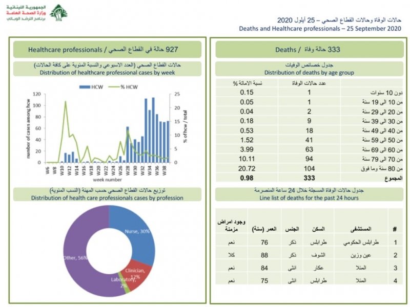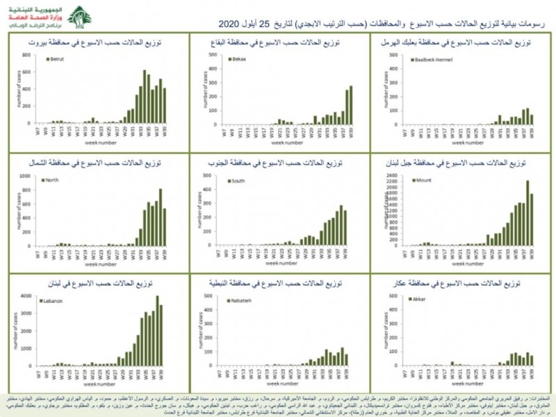 نشرت وزارة الصحة جدولا يظهر توزع اصابات كورونا الجديدة على المناطق والبلدات.