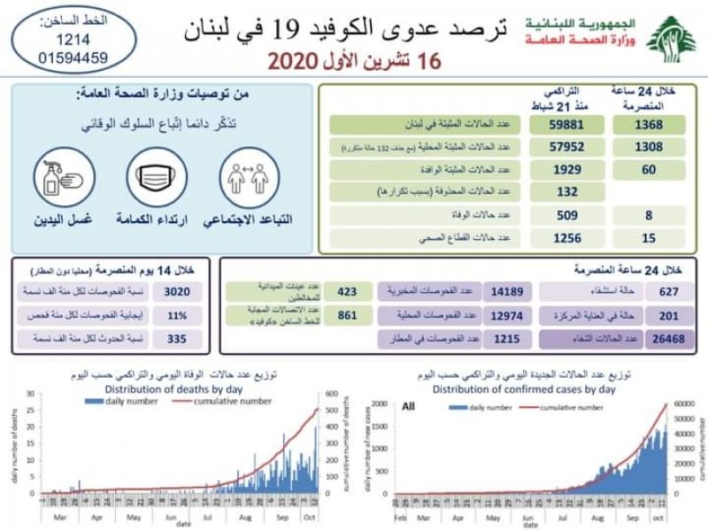 وزارة الصحة: تسجيل 1368 إصابة جديدة بفيروس #كورونا و8 حالات وفاة