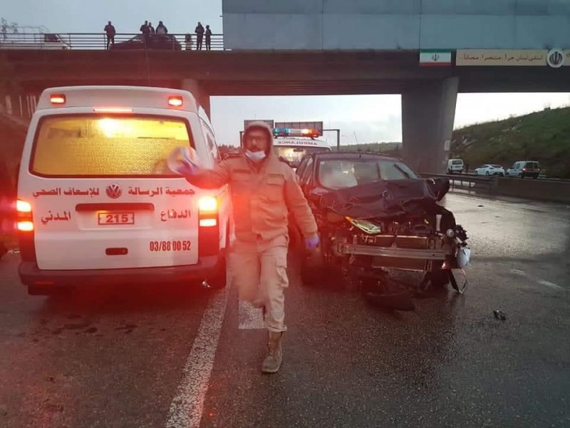 أدى حادث سير بين سيارة إسعاف تابعة لجمعية الرسالة للإسعاف الصحي فوج الخرايب وسيارتين على أوتوستراد الجنوب - الإنصارية بالقرب من جامعة فينيسيا الى سقوط إصابات من المسعفين.