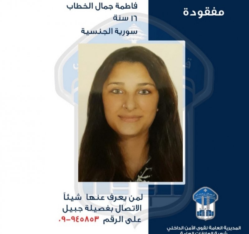 التي غادرت منذ حوالي الستة أشهر منزل ذويها في محلة فتري --جبيل، ولم تعُد حتى تاريخه.