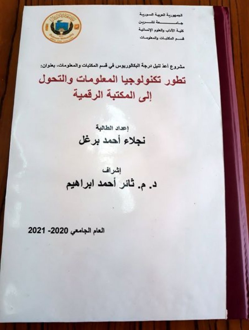 "تم مناقشة مشروع التخرج للطالبة المعمرة في جامعة تشرين-كلية الآداب والعلوم الإنسانية نجلاء أحمد برغل “أم هشام” و هي من مواليد 1942 ولديها ثمانية أولاد و خمسة عشر حفيداً منهم الطبيب و المهندس و..الخ.