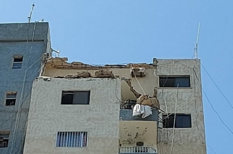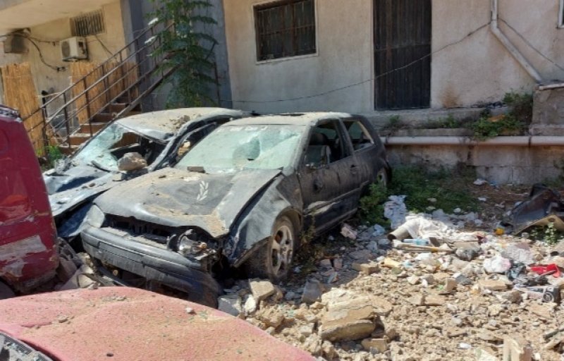 فقد انهارات الاجزاء العليا من حافة سطح احد المباني العالية في حي الاثار في مدينة صور والذي يقع قبالة مبنى الدفاع المدني القديم وسقط الركام الى الشارع مما ادى الى اضرار فادحة في السيارات المتوقفة اسفل المبنى.