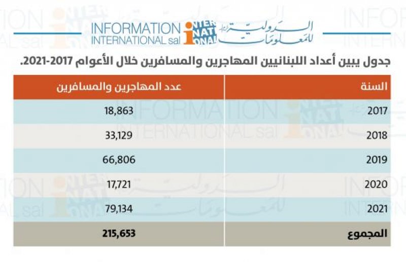 وقد وصل عدد المهاجرين والمسافرين في العام 2021 إلى 79,134 شخصاً مقارنة بـ 17,721 شخصاً في العام 2020 أي بارتفاع مقداره 61,413 شخصاً ونسبته 346%. وبالتالي يكون العام 2021 قد سجل العدد الأكبر من المهاجرين والمسافرين خلال الأعوام الخمس الماضية.