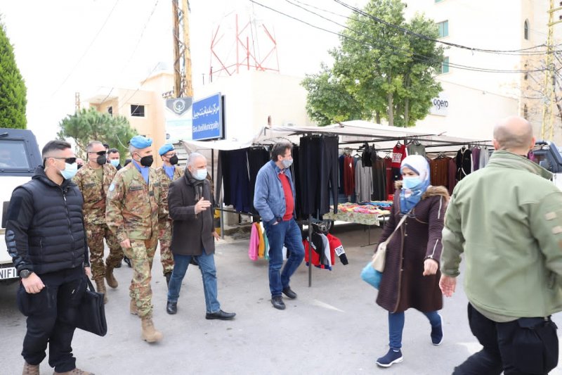 جال قائد القطاع الغربي لليونيفيل الجديد الجنرال الايطالي ماسيميليانو ستيكا في مدينة بنت جبيل والتقى برئيس البلدية المهندس عفيف بزي.