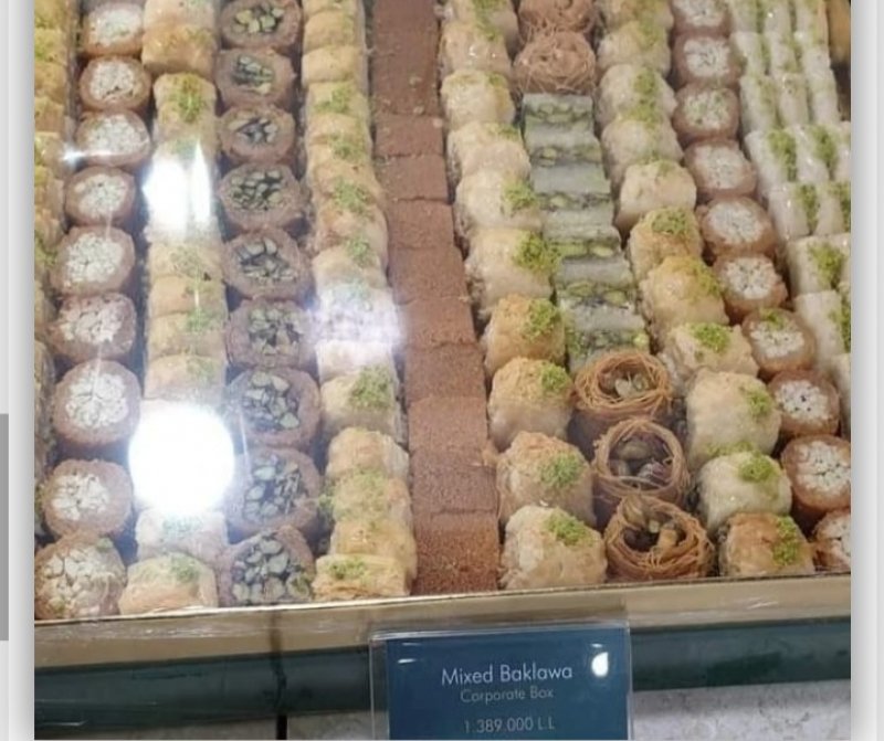 تناقلت مواقع التواصل الاجتماعي صورة التقطت في أحد محال الحلويات، تظهر أنّ سعر كيلو البقلاوة أصبح باهظا جدا ويقارب المليون ونصف المليون ليرة، فيما كان سابقاً لا يتعدى الـ30000 ليرة لبنانية.