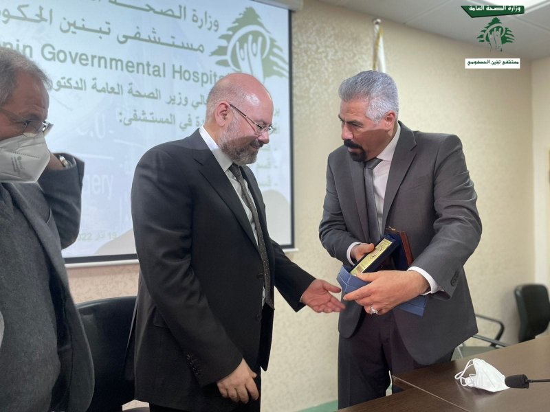 اهلا وسهلا بكم يا معالي الوزير في عرين دولة رئيس مجلس النواب الأخ الأستاذ نبيه بري اهلا وسهلا بكم في هذا الصرح الطبي مستشفى تبنين الحكومي الذي شكل ويشكل صمام أمان صحي لتبنين والقرى المحيطة في اقضية بنت جبيل مرجعيون وصور. شارحاً إنجازات المستشفى خلال العام المنصرم وقدم شرحاً مسهباً عن هذا الصرح الطبي المتقدم وعن التجهيزات المقدمة بهبةٍ من الصندوق الكويتي للتنمية الإقتصادية العربية عبر مجلس الإنماء والإعمار، وهذه الأقسام مجهزة بأحدث التجهيزات والتقنيات العالية ، مع موارد بشرية مميزة ذات سمعة وخبرة واسعة للعمل في هذه الأقسام