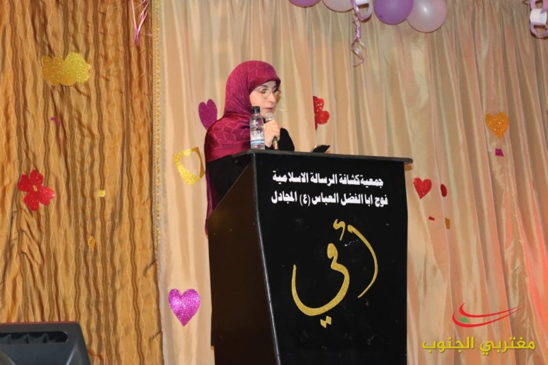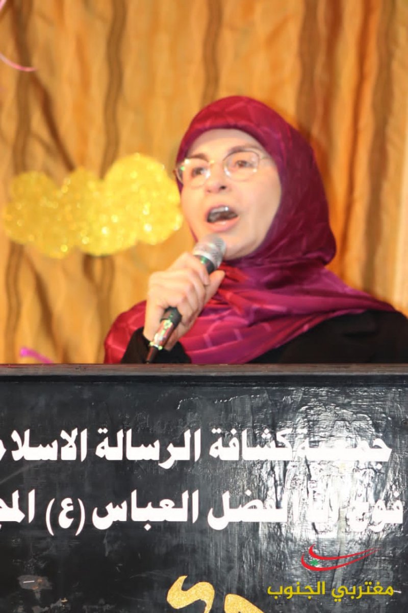 وقالت: "نحن امام تحديات كثيرة منها ما يفرضه هذا الفضاء الاعلامي المفتوح وغير المضبوط الذي يكون راي ولكن لا يكون ثقافة ومعرفة، واليوم جميعنا مدعوون للتصدي لكل السياسات التي تدمر المجتمع انطلاقا من ايماننا برسالة محمد والزهراء وزينب (ع) في كربلاء".