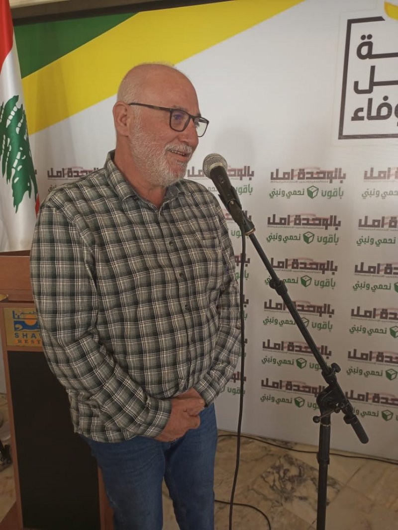 وقدم اللواء توفيق عبدالله بِاسم حركة "فتح" وأبناء شعبنا الفلسطيني في مخيّمات وتجمُّعات منطقة صور التهاني والتبريك لنواب لائحة الأمل والوفاء في مدينة صور جنوب لبنان بفوزهم بالانتخابات النيابية، متمنيًا لهم النجاح والتوفيق في خدمة أشقائنا اللبنانيين بخاصة في هذه المرحلة الصعبة التي يمر بها لبنان، داعيًا أن يعينهم الله على إخراج لبنان الشقيق من هذه الأزمة التي تعصف باقتصاده وقوت أبنائه.
