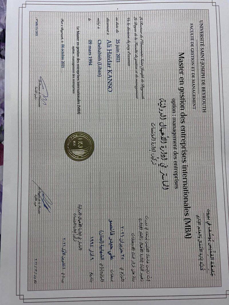 تتوالى نجاحات المغتربي في بلاد الآغتراب لرفع أسم لبنان عاليا" في شتّى بقاع الأرض.. فلنباركْ لابن بلدة المتألق الأستاذ علي حيدر قانصو لنياله شهادة ماستر في إدارة الأعمال من الجامعة السوربون - فرنسا-