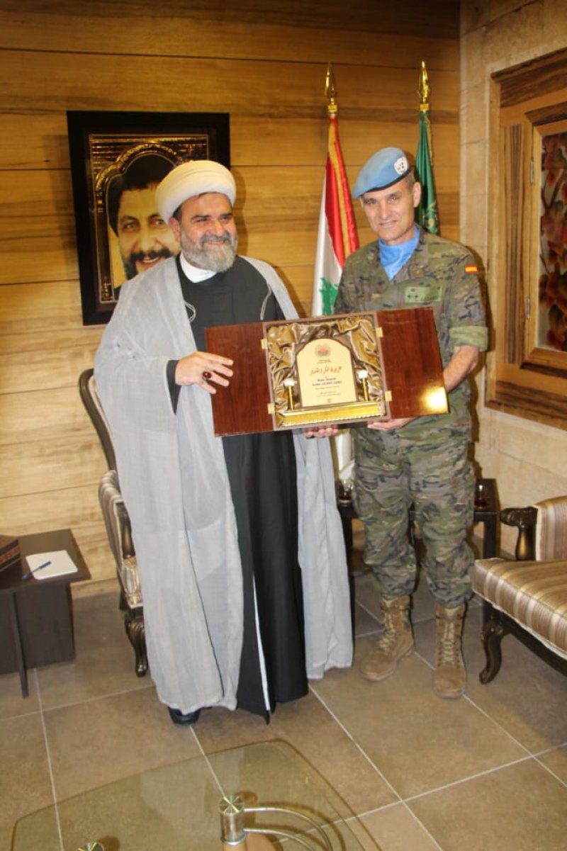 القاضي العلامة الشيخ حسن عبد الله الذي قال بعد اللقاء: أن الدور الذي تقوم به اليونيفيل نحترمه وان المنطقة التي يخدم فيها الجنرال الأسباني تطوق إلى العيش بأمان واستقرار منذ العام ١٩٧٨ حيث كان القرار الاممي رقم ٤٢٥ الذي يلزم العدو الصهيوني على الانسحاب من لبنان وان الإمام القائد السيد موسى الصدر عمل جاهدا في حينه على استصدار القرار الاممي وهذا يدل على إن سكان الجنوب يريدون دائمًا السلام ولكن هذا القرار لم يطبق بل اجبر المحتل الاسرائيلي على المغادرة وكان نصرا للبنان وللامم المتحدة.