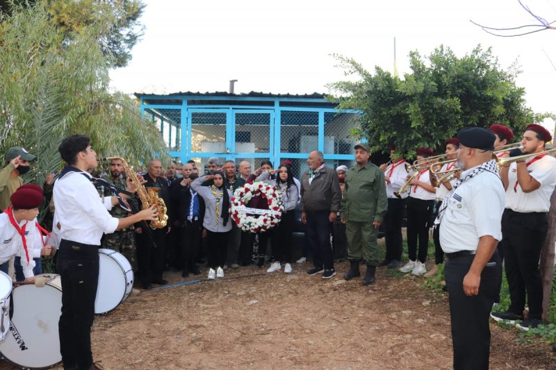 وبعدها وضع المشاركون إكليل من الزهور على ضريح الشهداء في مخيّم البرج الشمالي وعزف نشيد الشهيد من قبل فرقة الشروق الكشفية.