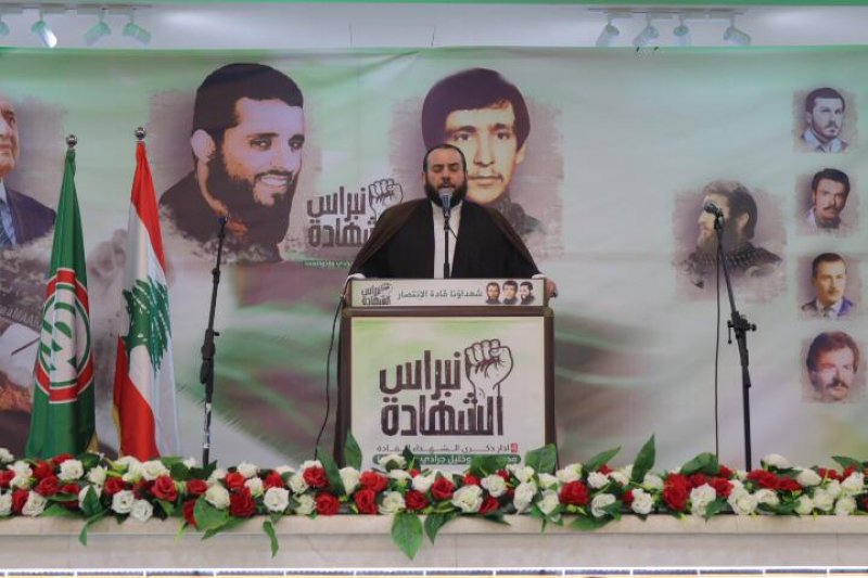 وتابع: "هنا في معركة سقطت اسرائيل وتحرر الجنوب ولبنان، و من أحجار حسينيتها المهدّمة قام مجد لبنان وكرامته، وإنّه يوم الشهداء وإنها ذكراهم ونحن لا نملك إلا الشهداء".