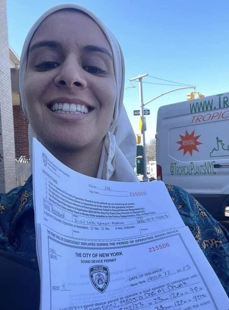 وكتبت رنا في أول رد لها كيف حققت حلمها بنجاح: "أخبار تاريخية !!! مجرد فتاة مسلمة من نيويورك في رمضان ولديها ثلاثة تصاريح صوت من الأذان لمساجد أستوريا التي نشأت فيها، مما يعني أنك ستسير في شارع استونيا وستسمع صوت الأذان قريبًا".