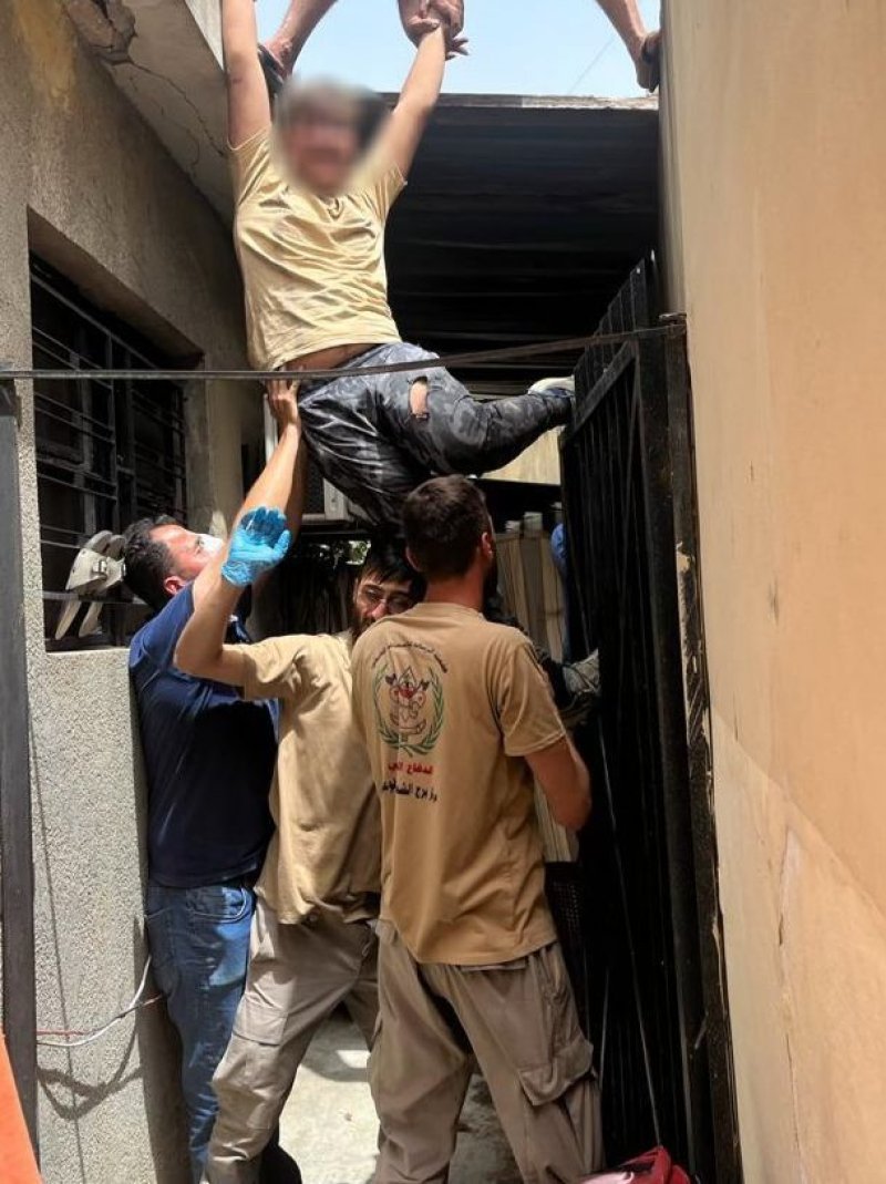 حيث عمل الفريق على قص الحديد وتحرير القدم بالتعاون مع اهالي البلدة..